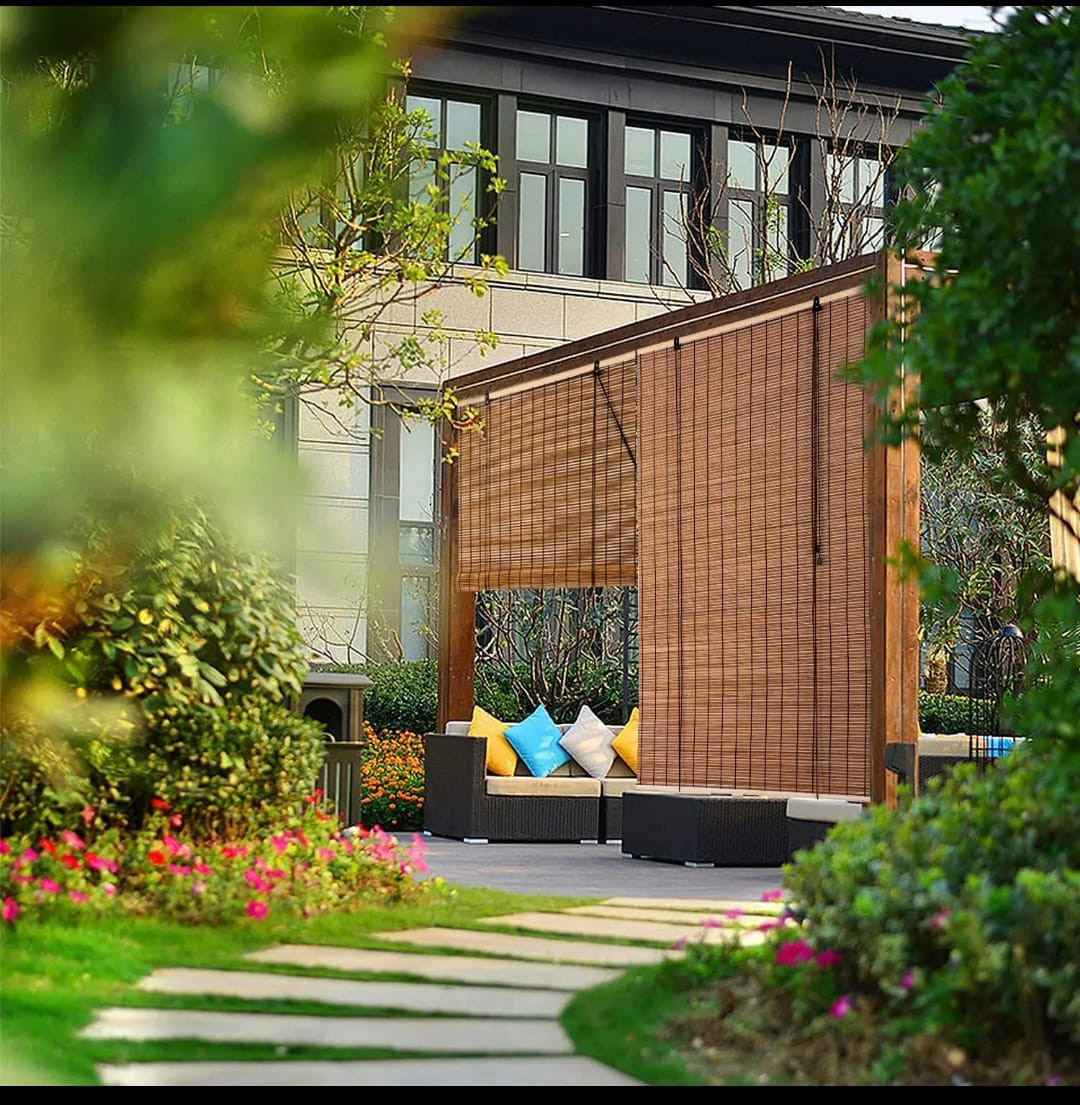 ستائر بامبو من الخيزران الطبيعي دوارة قابلة للطي، جيدة التهوية حماية من الاشعة فوق البنفسجية ستارة تعتيم للنوافذ عاكسة للضوء تتضمن جميع اجزاء التركيب