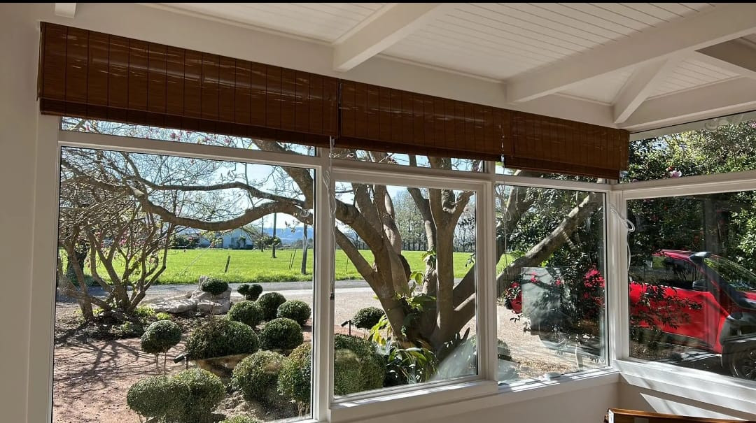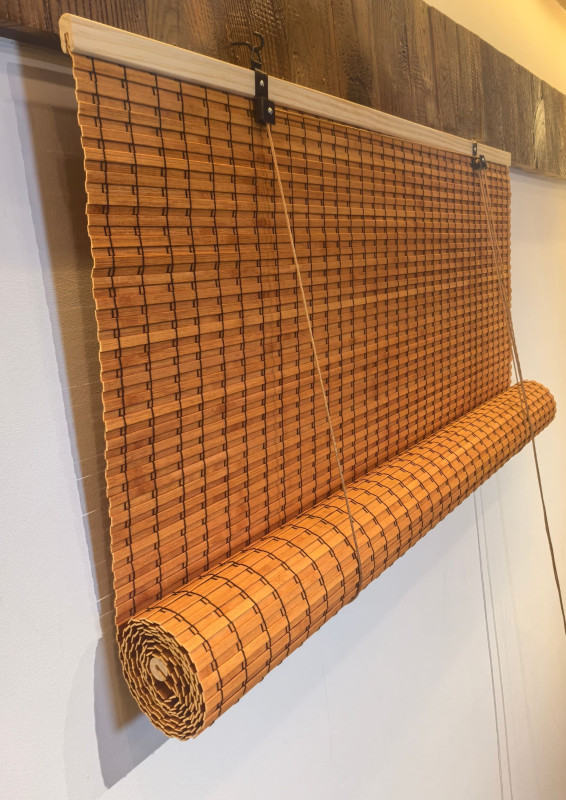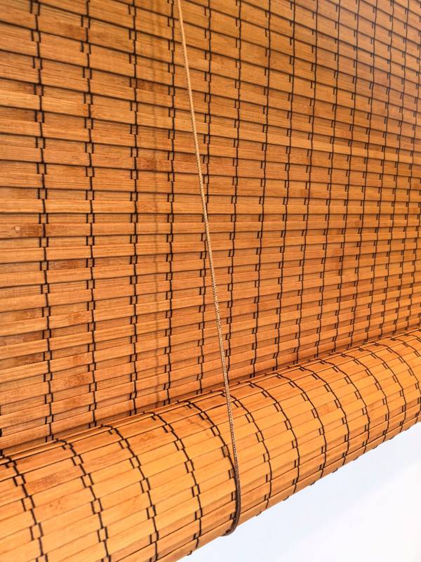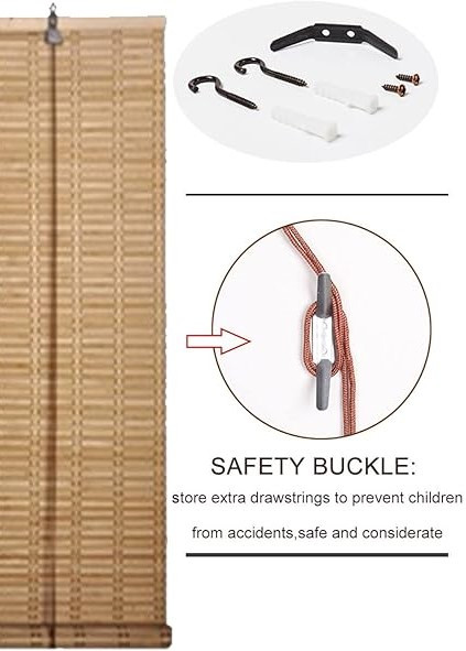 ستائر بامبو من الخيزران الطبيعي دوارة قابلة للطي، جيدة التهوية حماية من الاشعة فوق البنفسجية ستارة تعتيم للنوافذ عاكسة للضوء تتضمن جميع اجزاء التركيب