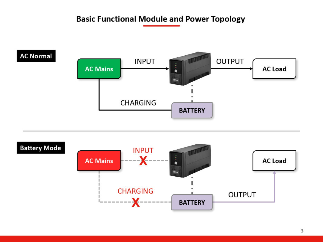 ● سيتم إيقاف تشغيل UPS عند انخفاض طاقة البطارية ; سيتم إعادة تشغيل UPS تلقائيًا عند استعادة التيار المتردد (إعادة التشغيل التلقائي)