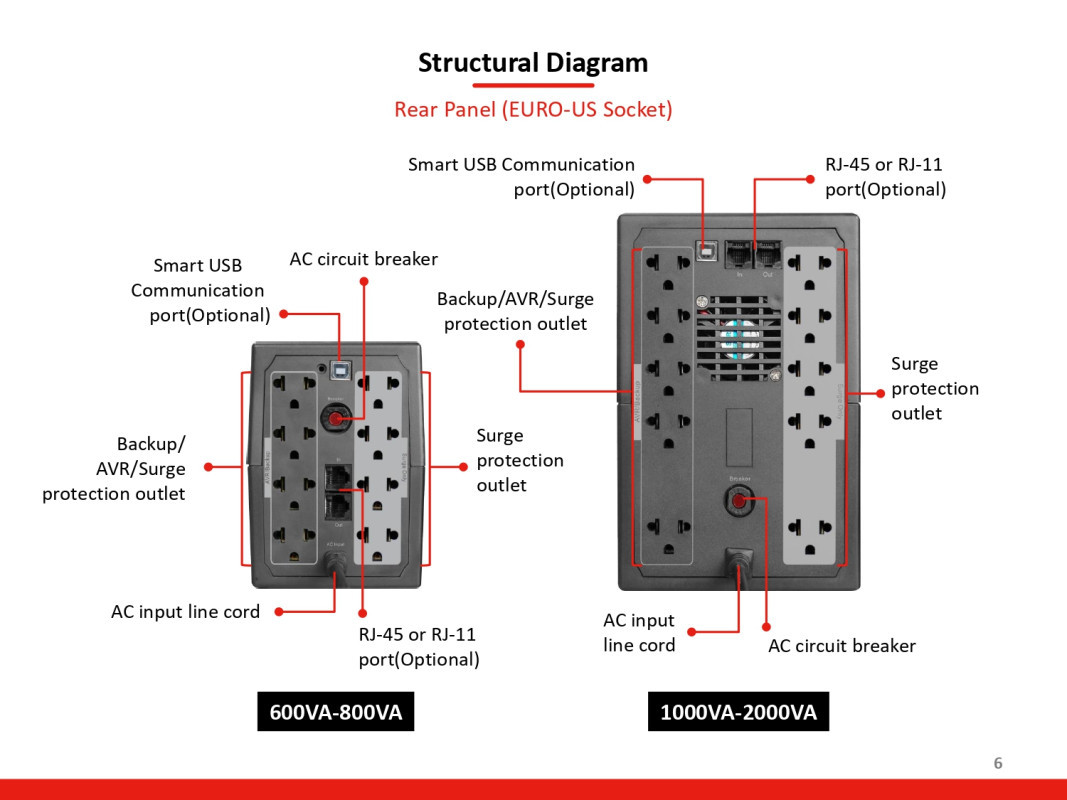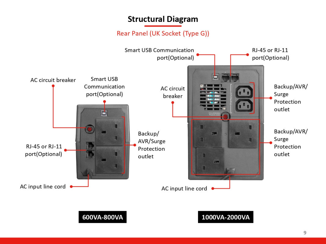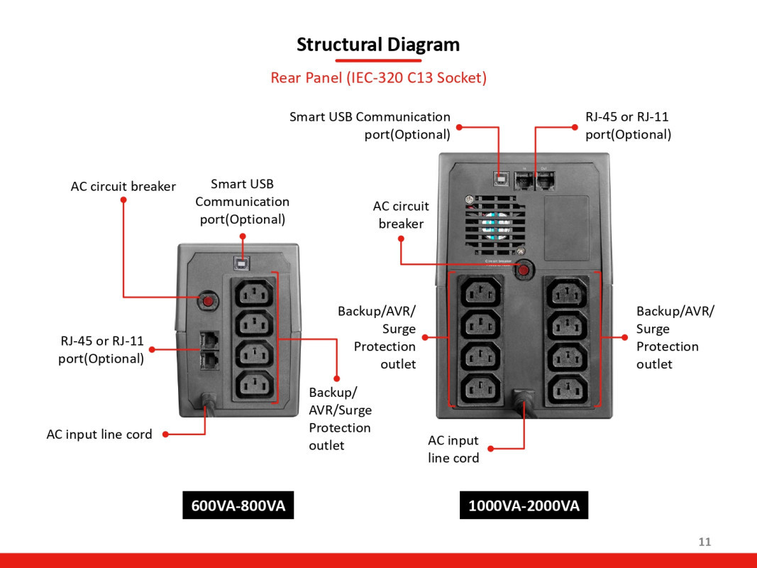 ● تم تصميم منفذ USB وبرنامج الشاشة لإدارة حالة UPS عبر جهاز الكمبيوتر (اختياري)