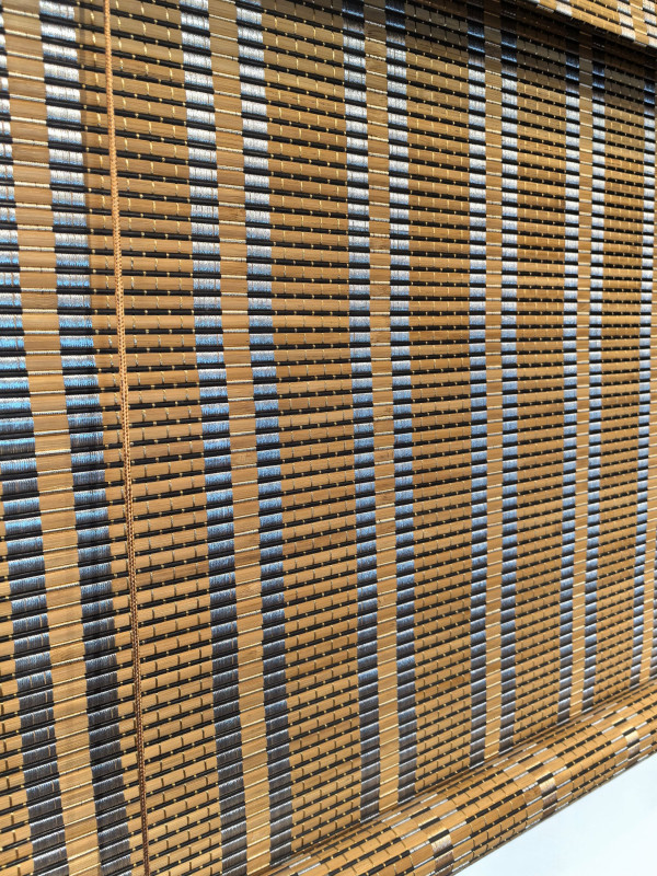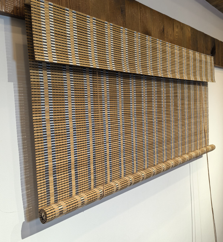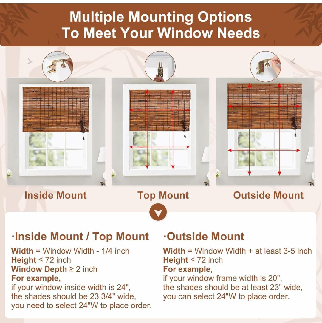 Natural bamboo roller blinds, foldable, breathable, UV protection, blackout window curtains, light reflective, all mounting hardware included.